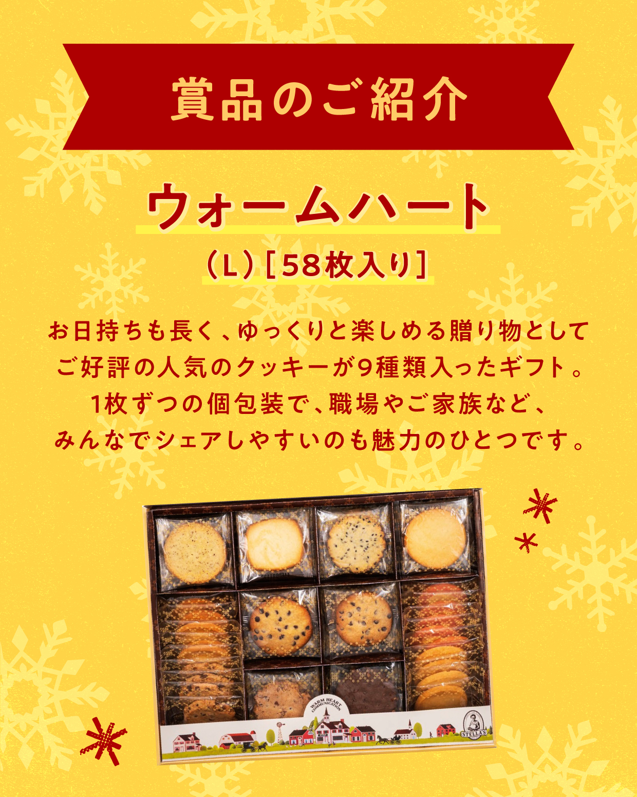 캠페인 기간 중, 우라와 PARCO 공식 Instagram을 팔로우&코멘트한 분 중에서 추첨으로 10분께 스텔라 아줌마의 쿠키 「웜 하트(L)」[58매들이]를 선물하겠습니다